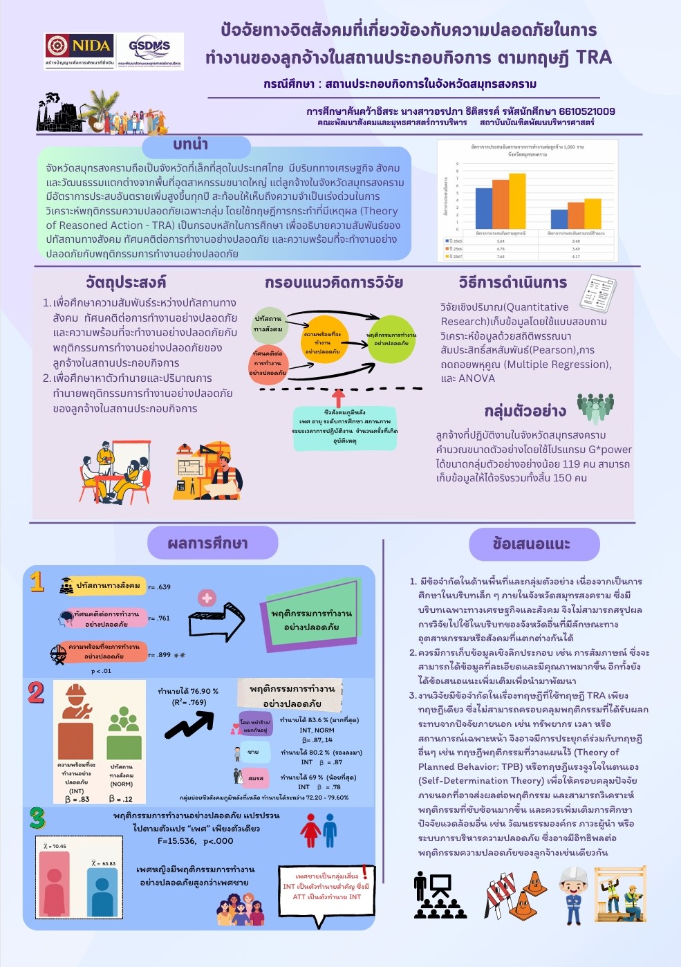 ประสิทธิผลในการดำเนินงานของคณะกรรมการสวัสดิการในสถานประกอบการ : พื้นที่จังหวัดฉะเชิงเทรา | ดารัณ ชนะสิทธิ์ | อ.ดร.ภูมิ เพชรกาญจนาพงศ์ |